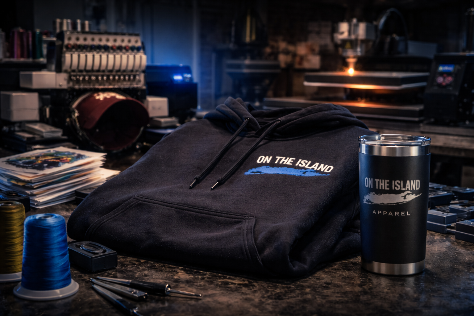 Need one piece or one thousand — we'll print it. DTF, embroidery, and laser engraving done in-house with a 72-hour average turnaround. No setup fees, ever.